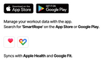 Made from transparent polycarbonate material, the sturdy handles of SmartRope PURE provide smooth grip. PURE's transparent handles display the electronic and mechanical components, and the LEDs glow in various colors to indicate different settings.